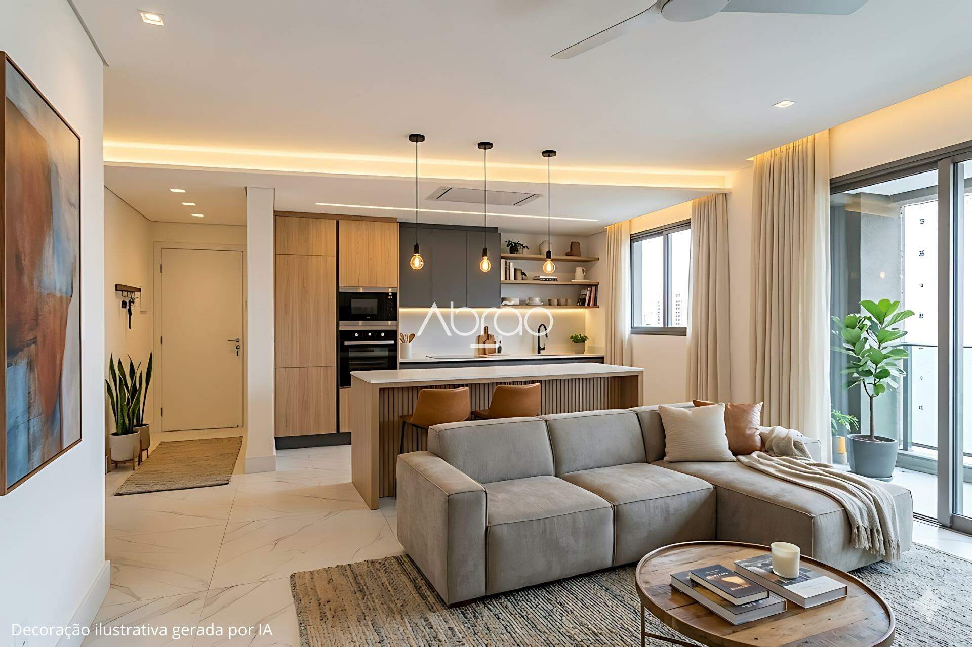 Com 138 m² de área privativa, o imóvel possui uma planta moderna e bem distribuída, com living integrado à cozinha e à sacada com churrasqueira a carvão, proporcionando amplitude e integração para o dia a dia e momentos de lazer.